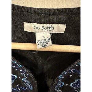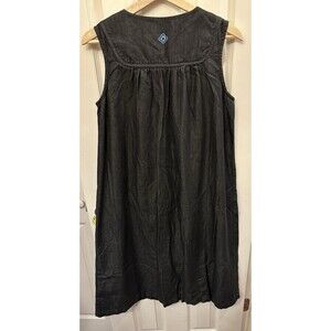 Go Softly Patio Black Denim Embroidered Sleeveless Zip Dress 100% Cotton Size S