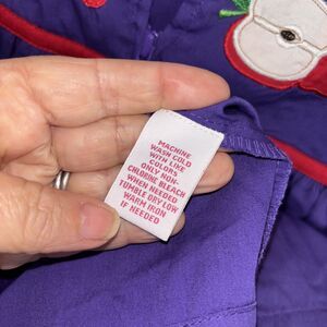 Go softly patio dress cotton full front zip purple pockets appliqué embroidered colorful fruit v neck short sleeve midi house dress size 1X pit to pit 27length 45 machine wash red trim
