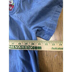 Go Softly Patio Embroidered Floral Denim Mumu Dress Zip Front Pockets Sz Medium