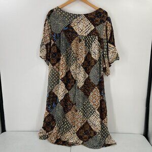 Go Softly Patio Woman Dress 3X Patchwork Rayon Muumuu Caftan FLAWED Read Desc