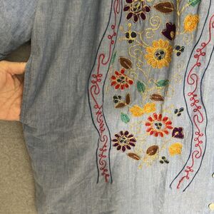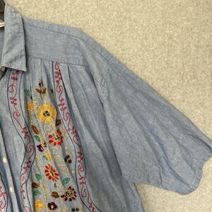 Go Softly Shirt Dress Size 2X Blue Chambray Denim Embroidered Artsy Porch House