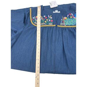 Go Softly Women's Denim Patio Dress 3X Peacock Embroidery Mumu Short Sleeve