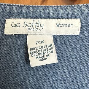 Go Softly Women’s Dress 2X Floral Cottage Denim Blue Patio House Zip Up
