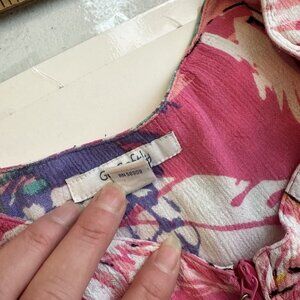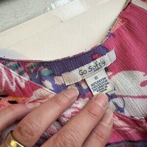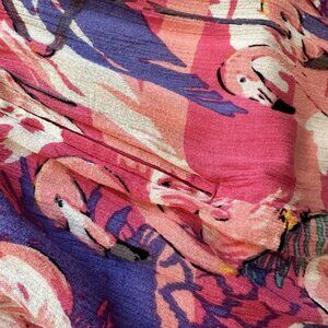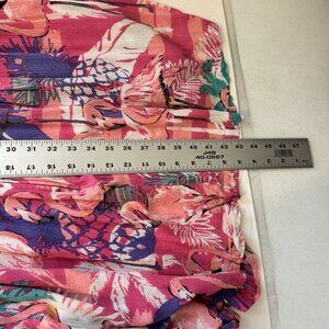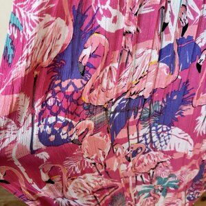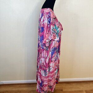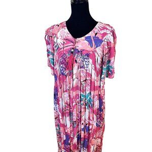 Go Softly Womens Pink Flamingo MuMu Housedress Small Zip Up Short Sleeve Midi