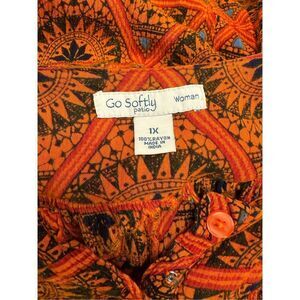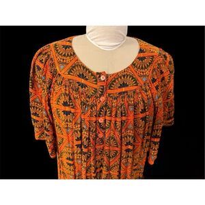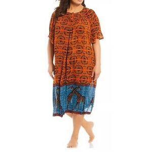 Beautiful animal print patio dress size 1X. Flounce sleeves, roy d neck, front buttons. Giraffe print around bottom. Comfortable, lightweight and packable.