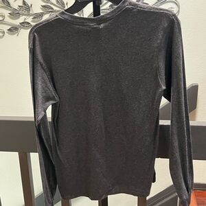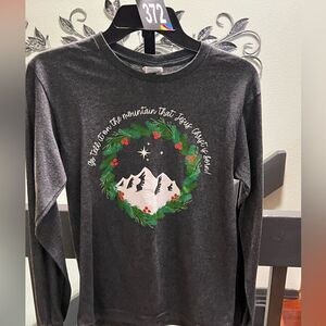 This stylish gray long sleeve shirt features a festive mountain graphic, perfect for any occasion. Comfortable and trendy, it's a great addition to your child's wardrobe. Length 25. Pit to,pit 19”. From a smoke free 🏡