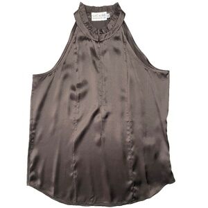 This cutaway top in Java (deep brown) is the season's most effortless (and versatile) must-have. The top has a delicate raw edge ruffle and functional zipper neckline. New with tags.