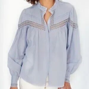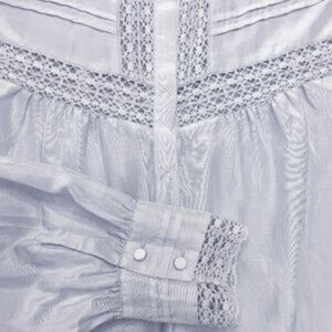 Beautiful vintage-inspired blouse with modern appeal. Airy silk/cotton blend coupled with intricate crochet lace insets makes this a standout take on the seasonless cotton shirt.