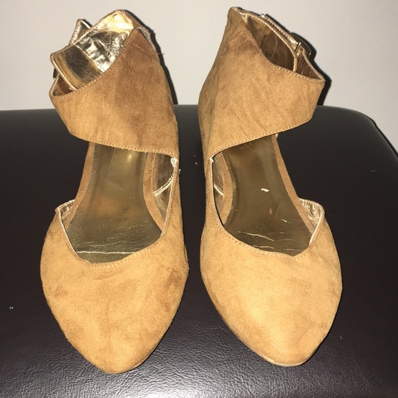 Suede look ankle buckle flats