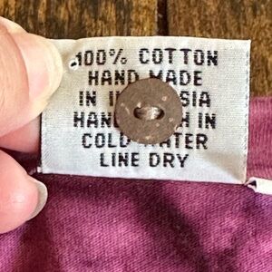 Yes, preowned condition with no flaws to note. 100% cotton, handmade made in India. Pretty pink tone tie-dye with contrasting eyelet. Natural fiber buttons down the front with a V-neck line.