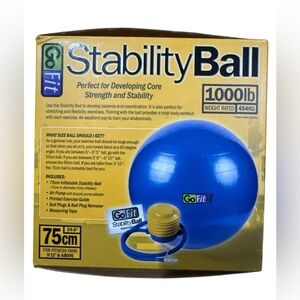 The GoFit Stability Exercise Ball is a red 75cm inflatable gym ball designed for fitness workouts. It comes with an air pump for easy inflation. This exercise ball is suitable for gym and training activities, providing stability and support for various exercises. Perfect for improving balance, core strength, and overall fitness, the GoFit Stability Exercise Ball is a versatile fitness tool for home or gym use.