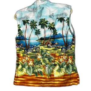 GoHawaii sleeveless button front top motorcycle palm tree scene size M
