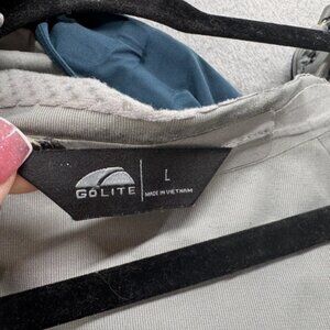 Tackle the trail or the city in this versatile GoLite Polartec Full Zip Jacket. This men's Size Large windbreaker in a vibrant Teal Blue is built for performance. Featuring a hooded, softshell nylon outer layer and Polartec lining, it offers excellent wind-resistance and water repellency. Lightweight, packable, and ideal for running, hiking, and travel, this jacket is a perfect all-season shell with zippered pockets.