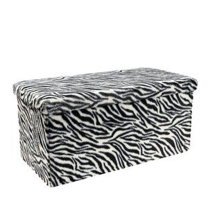 Go-Poufs Knock-Down Rectangular Faux Fur Storage Ottoman | Zebra Black/White