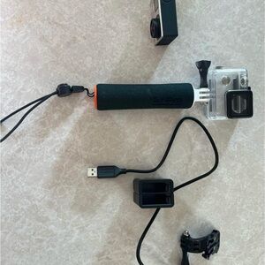 Used but in great condition GoPro Hero 4, includes 1 battery and battery charger port, cord, and waterproof floating case