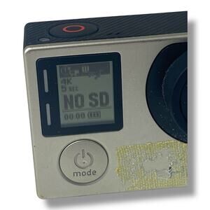 Camera works great no battery included… fromt screen has pixels messed up but doesnt affect performance The GoPro HERO 4 Silver Edition 4K Action Camera is a high-quality camera designed for capturing adventurous moments in ultra high definition. With a sleek silver design, this camera from the GoPro HERO series is perfect for recording experiences on the go. Featuring built-in Wi-Fi and a microphone, it allows for easy sharing and capturing of memories. The camera includes connectivity options such as USB and HDMI, along with removable storage options for convenient use. Trusted for its durability and performance, the GoPro HERO 4 Silver Edition is a top choice for action camera enthusiasts.