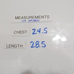 Flat measurements: Chest - 24.5 inches; Length - 28.5 inches