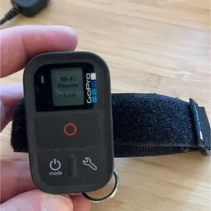 GoPro Smart WiFi Remote. Bluetooth wireless, waterproof. Used once or twice, like new condition. Comes with velcro strap, charging cable, key ring attachment, and user guide.