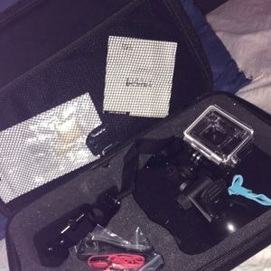 It’s a GoPro camera that also comes with and accessory kit!!! It has been used one time.