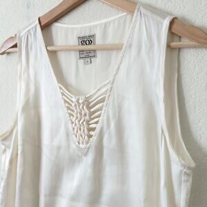 washable silk the original washable silk by go silk size small women's tank top cream braided neckline 92% silk 8% spandex sleeveless blouse length 23. front 25 back hit to pit 20 next to new condition
