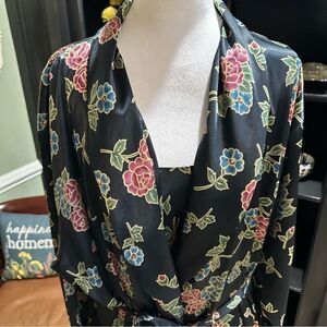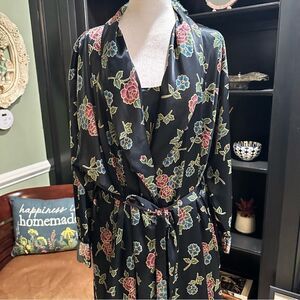 Go Softly Black Metallic Rose Vintage Robe and Nightgown Size Large