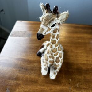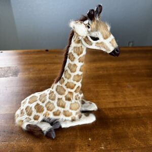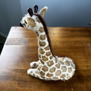 Goat Fur Giraffe Figurine Decor Figure Realistic Resting 6”x8”