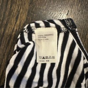 100% organic cotton jersey sleeveless baby onesie. Black and white striped. Excellent condition and great quality!