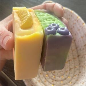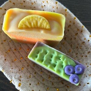 Embeds are made from melt and pour soap, ingredients are added in photos.