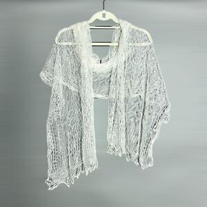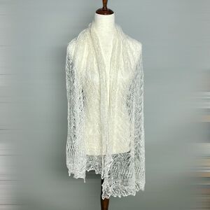 Goat Wool Lace Knit Oblong Shawl Scarf Handmade Russian Orenburg Style Ivory