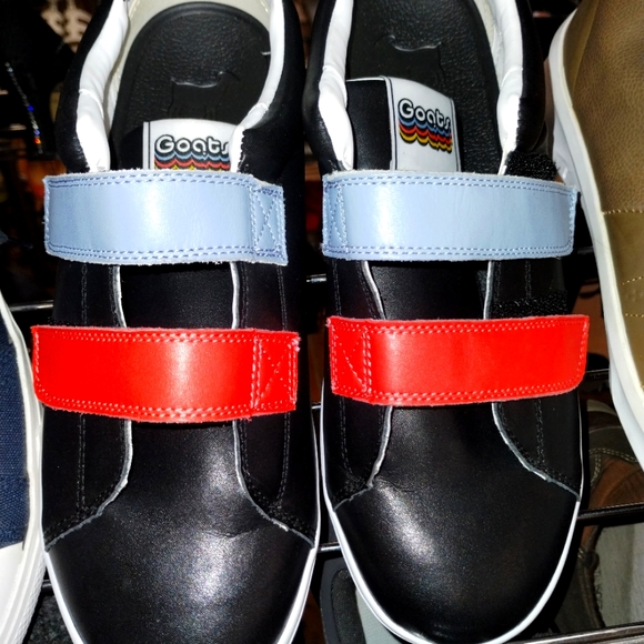 Goats Women's Black Leather The 005 Multicolor 2-Strap Slip-On Sneakers