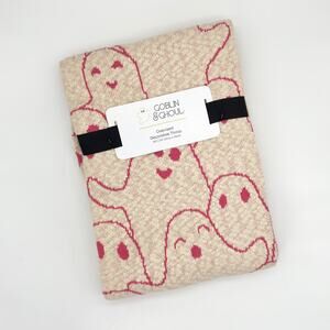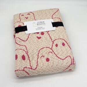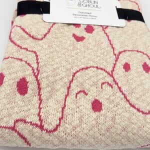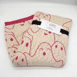 Goblin & Ghoul Hot Pink Ghost Knit Throw Blanket Halloween Stacked Sketch Ghosts