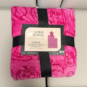 Goblin & Ghoul Pink pillow and blanket set NWT