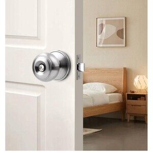 Gobrico Brushed Satin Nickel Privacy Door Knob.Flatball.bed/bathroom.new