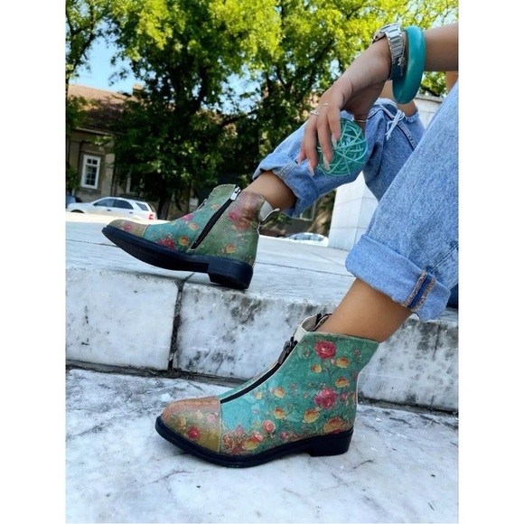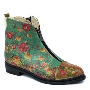 Goby Let Your Soul Free Booties. Made in Turkey. These are beautiful vegan floral booties but they do run narrow. I have worn twice and complimented many times.