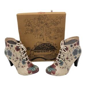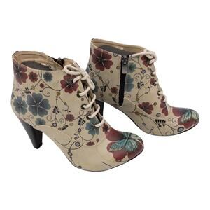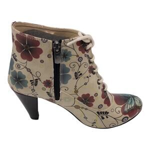 Goby Tan Flowers and Butterfly Heeled Boho Ankle Boots 39 8.5 Women's