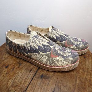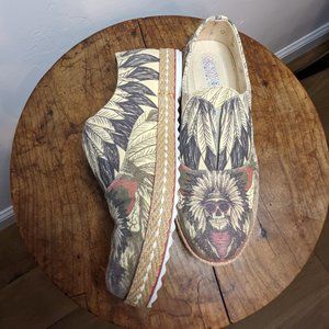 These are so fly! Like new (worn once), slip on sneakers. Perfect for vacation and summer time. Shoes with a little personality. EU size 41.