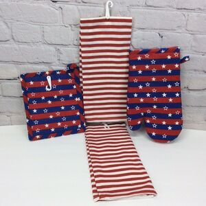 "God Bless The USA" 4 Pc Kitchen Set Patriotic 2 Towels/1 Oven Mitt/1 Pot Holder