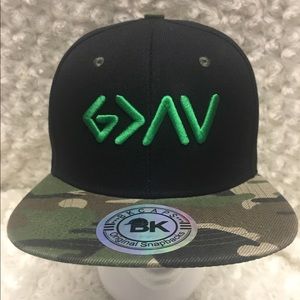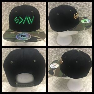 Black w/ Camouflage & Green...... With the blessings of God , we were able to create the perfect cap. Handmade and crafted to meet our standards of genuine quality and perfection. With the all around good fit , we were able to construct a cap that is durable and comfortable. Our Classic six-panel silhouette features an embroidered logo at the front along with a curved brim (Durable) + stitched grommets at the crown. Complete with an adjustable Custom strapback closure.