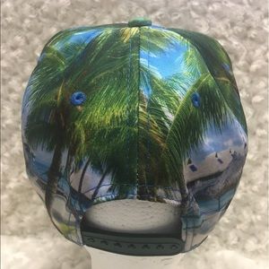 Vacation Beach Print w/ Green..... With the blessings of God , we were able to create the perfect cap. Handmade and crafted to meet our standards of genuine quality and perfection. With the all around good fit , we were able to construct a cap that is durable and comfortable. Our Classic six-panel silhouette features an embroidered logo at the front along with a curved brim (Durable) + stitched grommets at the crown. Complete with an adjustable Custom strapback closure.