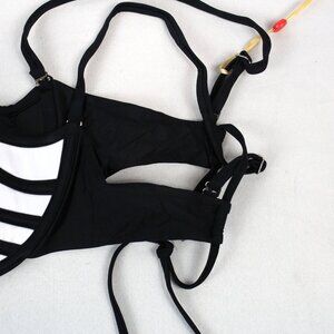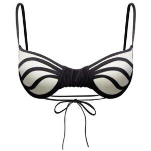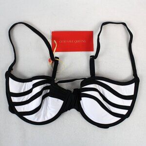 God Save Queens Allure Pearl Bikini Top in White & Black - Size Large - NWT