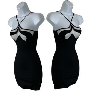 God Save Queens Mia Dress XS Black Mini Bodycon Sleeveless Sheer Sexy Clubbing