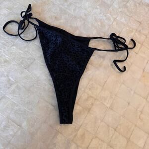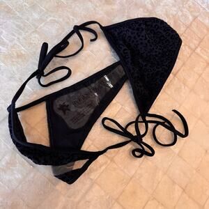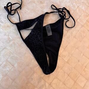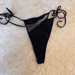 God Save Queens thong panty new black velvet textured mesh sheer string ties