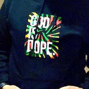 God is Dope. white tee with multi-color box pattern. UNISEX size small.