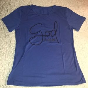 God is Good crew neck tee. Royal blue with black lettering. Super cute with black jeans!