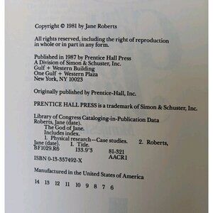 "The God of Jane: A Psychic Manifesto" by Jane Roberts, published in 1981, is a 276-page book on spiritualism, exploring body, mind, and spirit, with an ISBN-10 of 013357492X.