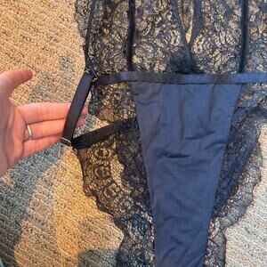 God save queens lace lingerie bodysuit Teddy sexy black GSQ strappy nightie sz M
