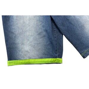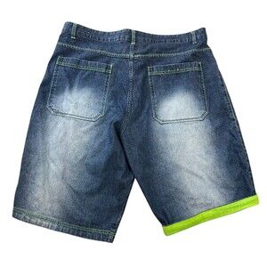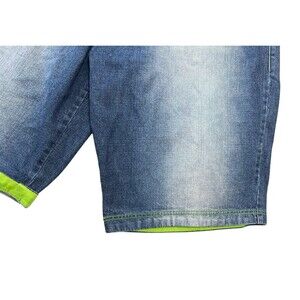 GodBody Men's Blue Jean Shorts Baggy Y2K Skater Streetwear Size 44 Lime Trim