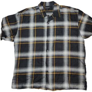 Godbody 3XL Linen Plaid Black Gold Short Sleeve Button Down Camp Shirt Menswear