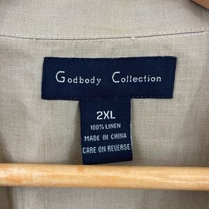 Godbody Collection Mens 2XL Beige 100% Linen Short Sleeve Button Up Shirt