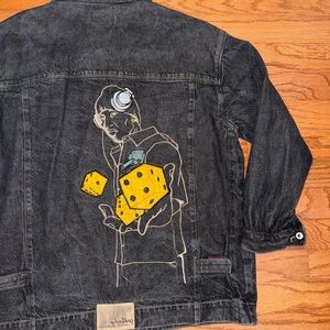 Godbody Denim Jacket 70's Street Wear Embroidered Headset Dice Money Over Sz XL